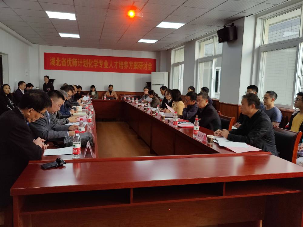 教务处副处长黄海军就教育部对师范教育培养目标的新要求做了解读,化学专业负责人和湖北省荆楚卓越教师(化学)项目负责人分别就“优师计划”人才培养方案的修订给予说明并提出建议。10名来自省内一线的中学骨干化学教师结合自己多年的教学经验和感悟纷纷建言献策,并就课程开设、授课内容和形式提出了很好的建议。讨论结束后,10名中学骨干教师被聘为“优师计划”校外兼职导师。