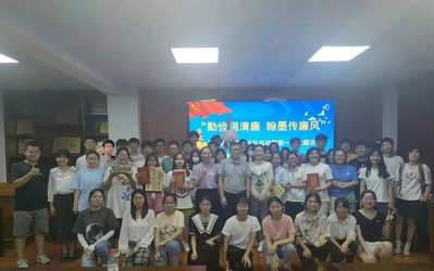 为营造浓厚的校园廉洁文化氛围,增强师生崇清尚廉意识,深入推进清廉班级建设,WilliamHill威廉希尔2106班于6月11日晚在化学大楼五楼会议室开展“勤俭倡廉洁、翰墨传廉风”主题班会。学院党总支书记罗鸿飞、副书记陈盼、班主任潘其云、辅导员谢苗苗、石豪、龙琴及2106班全体同学参加活动。