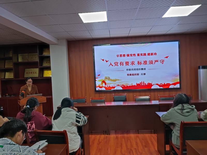 11月23日晚,我院分党校第67期入党积极分子培训班第三讲《入党有要求,标准需严守》在化学大楼5楼会议室开讲,本次党课由校党委组织部副部长应娜主讲。