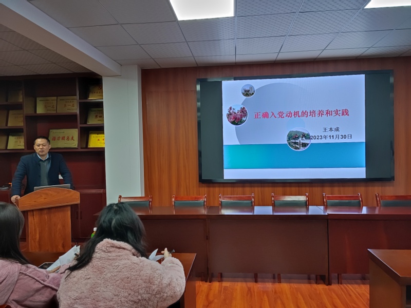 1130日晚,我院分党校第67期入党积极分子培训班党课第四讲《正确入党动机的培养与实践》在化学大楼五楼会议室开讲,本次党课由人事处副处长王本成主讲。