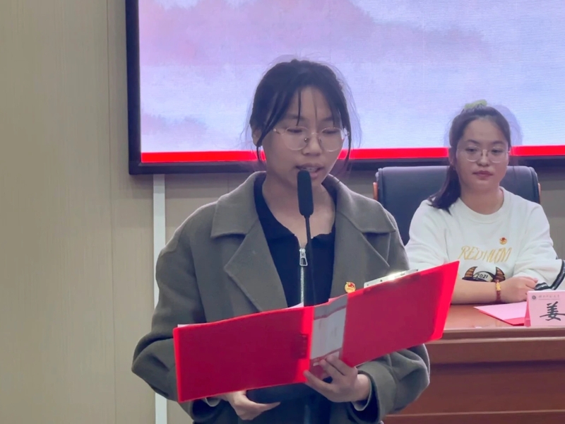 姜浍作为入团介绍人代表宣读《团章》中的有关团员义务和权利的条款,告诫新团员履行团员应尽义务,正确行使团员权利,发挥团员模范作用,是做一名合格团员的基本要求。随后,2203班章子怡同学作为新团员代表发言,表达了作为一名新团员为祖国发展繁荣而奋斗的使命担当和为人民谋幸福的理想信念。2201班詹佳文同学作为老团员代表发言,对新团员表示热烈的祝贺,同时呼吁大家不忘初心,在新的时代浪潮下乘风破浪,勇往直前,为强国建设、民族复兴贡献一份力量。