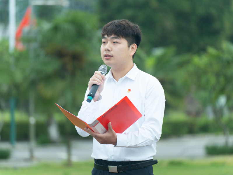 上午6:50,在庄严的国歌声中,五星红旗冉冉升起,全体师生肃立注目。学生代表2103班冯梦浩以《生逢新时代、青春正当时》为题进行了国旗下的演讲。他号召新时代化院青年要坚定理想信念、擦亮底色长志气;扎实专业基础、提升底蕴壮骨气;练就过硬本领、挺膺担当强底气,以青春之我、奋斗之我建设永远青春的国家、永远向上的民族、永远奋进的时代。