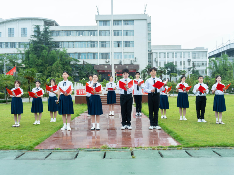 学生代表深情朗诵《党旗下,勇担青春梦想与荣光》,饱含着对党和祖国热烈而真挚的爱,表达了当代青年传承五四精神的坚定信念。