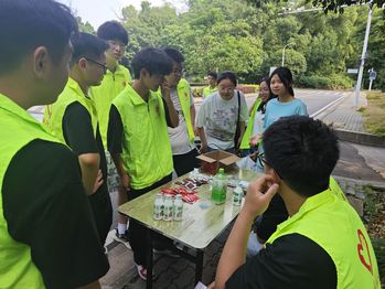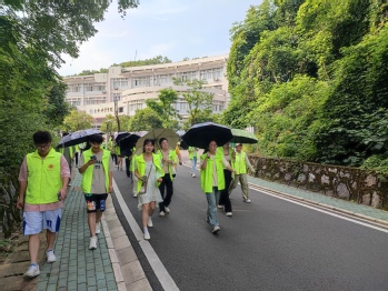 本次活动分为“低碳出行健步走”和“美丽校园我清扫”两个环节。上午八时许,健步走活动正式开始,工作人员和参与同学们一起从图书馆前出发,围绕校园内徒步一圈。大家精神抖擞,向来往同学倡导绿色、环保、低碳的生活理念,并对沿路草坪和道路上的废纸、食品袋等垃圾进行拾捡,用实际行动爱护环境。在沿途停靠站,志愿者为同学们准备了垃圾分类“答非所问”和“你问我答”等小游戏,增强大家对低碳生活的了解。