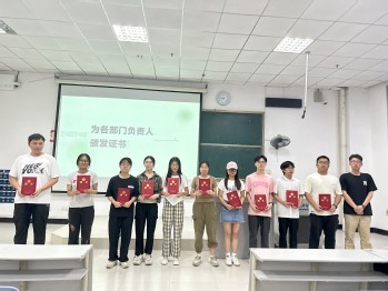 在过去的一年里,我院第四十三届院团委及学生会换届选举大会成员们积极工作,奉献自我,为学院学生工作的有序开展做出了巨大的贡献。为表达对他们工作的肯定,辅导员老师们为中心组成员、部长代表颁发聘书,以此肯定这一年来他们的辛勤付出。