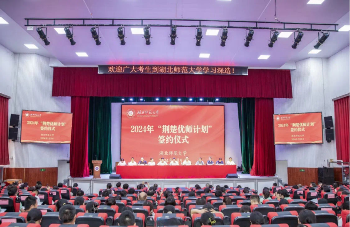 7月9日,我校2024年“荆楚优师计划”签约仪式在湖师大礼堂隆重举行,化学专业2024级“优师计划”64名新生与8个市(州)教育局顺利完成签约。