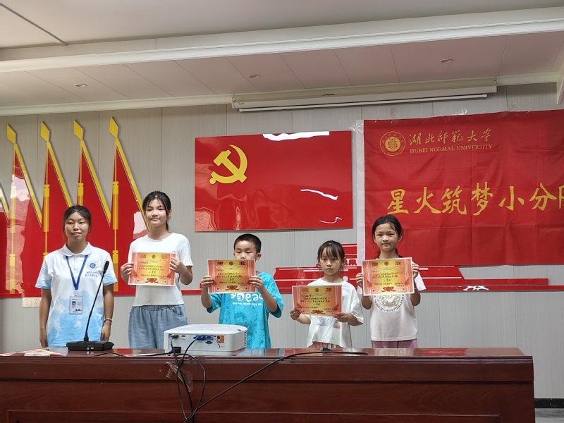 图为支教老师为获奖节目参演人员代表颁奖
