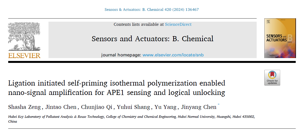 近日,国际知名期刊Sensors and Actuators B: Chemical(《传感器和执行器B:化学》)在线发表了我院陈金阳副教授团队在生物传感领域的最新研究成果。论文题为“Ligation initiated self-priming isothermal polymerization enabled nano-signal amplification for APE1 sensing and logical unlocking”(连接触发自引等温聚合赋能纳米信号放大用于APE1传感及逻辑解锁)。我院2021级硕士研究生曾莎莎为论文第一作者,陈金阳副教授为论文通讯作者,威廉williamhill为论文唯一通讯单位。Sensors and Actuators B: Chemical是ELSEVIER(爱思唯尔)出版社旗下传感领域著名期刊、SCI中科院大类一区期刊,最新影响因子为8.0。
