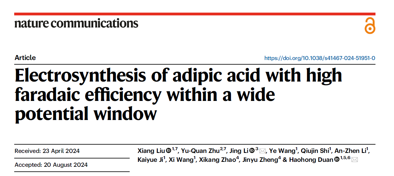 近日,国际顶级期刊Nature Communications(《自然·通讯》)在线刊发了物理化学教研室朱玉荃博士的最新学术论文,论文题为“Electrosynthesis of adipic acid with high faradaic efficiency within a wide potential window”(宽电位窗口内高法拉第效率电合成己二酸),朱玉荃博士为论文共同第一作者,清华大学、威廉williamhill分别为论文第一、第二通讯单位。Nature Communications是Nature旗下综合性子刊,是SCI中科院大类一区TOP期刊,最新影响因子为16.6。