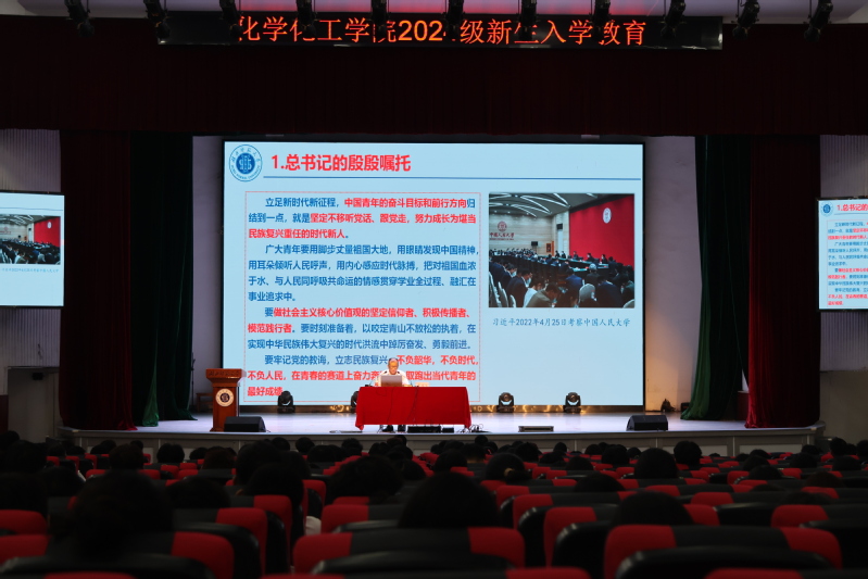 随后,罗鸿飞以学院近50年的发展历程为线索,向同学们讲述了一代代化院人秉持“自立自强、追求卓越”的学院精神,克服困难,创造了多个“学校第一”甚至“学校唯一”的优异成绩。一幅幅图片、一组组数据、一张张图表,串联起化院人奋斗的峥嵘岁月,罗鸿飞如数家珍地介绍了学院在学科建设与研究生培养、教学科研平台与质量工程项目、科学研究、师资队伍、国际交流、平台设备、杰出校友等方面的情况和取得的成绩,总结了科研氛围浓厚、学生学风醇厚、师德师风敦厚的学院特色。他希望同学们能从学院的办学历史中汲取营养,坚定理想信念,发奋图强,练就真本领,用智慧和能力服务于党、国家和人民,将学院精神融入到自身成长的血脉中,为学院建设与学校发展贡献自己的青春力量。