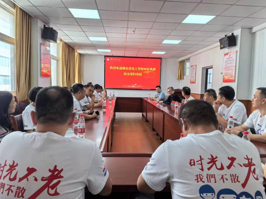 在新中国成立75周年之际,原湖北省化学工业学校1990级有机班、无机(二)班共40余名校友分别于10月2日、6日荣返母校团聚,纪念毕业30周年。学院党委书记罗鸿飞、院长殷国栋、副院长周兴旺,教师代表甘应良、卢莲英、夏新泉、陈芳、程银芳等出席座谈会。沙洋秦江化工有限公司总经理丁勇主持90级有机班校友座谈会,黄石国胜物流公司总经理余香平主持90无机(二)班校友座谈会。