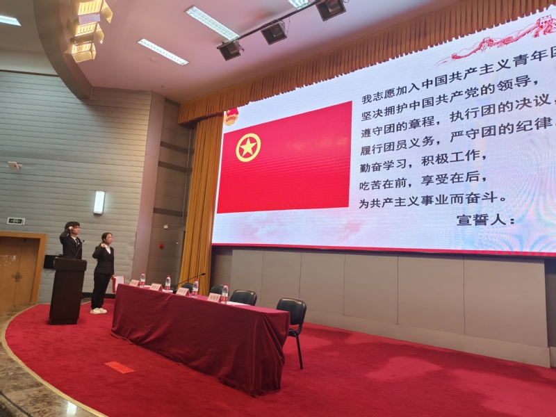 典礼伊始,全体起立,高唱中华人民共和国国歌。团校培训班班长王宇晴宣读团校学习纪律和规章制度,对全体学员提出要求。2402班的胡高图代表全体成员发言,他表示团校是青年团员成长的重要途径,不仅学习团的历史和优良传统,也能够学习党的创新理论,自己必将牢记青年学生的时代使命,不负韶华,奋楫前行,让青春在奋斗和奉献中绽放绚丽光彩!随后,全体团员重温了入团誓词。