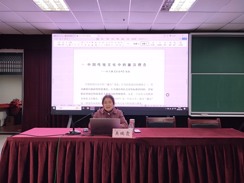 11月6日晚,我校汉语言文学专业教授、硕士生导师、学校教学督导委员会副主任、湖北省高校教学巡视员吴瑞霞教授受邀为我院第69期入党积极分子培训班学员讲授题为《中国传统文化中的廉洁理念》的廉政党课。