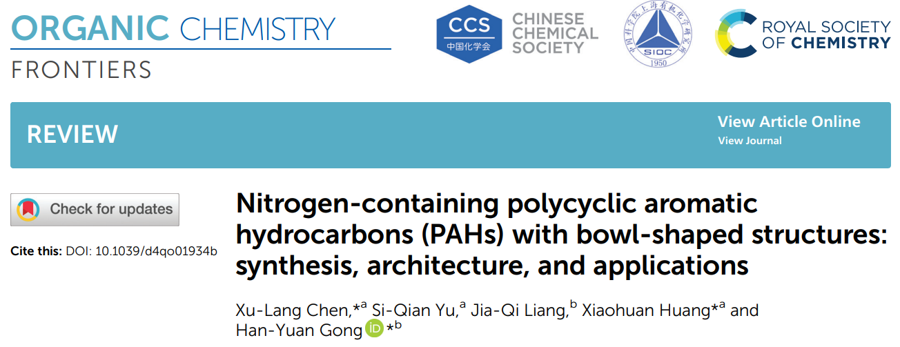 近日,国际知名期刊Organic Chemistry Frontiers(《有机化学前沿》)在线发表了我院有机化学教研室陈绪朗博士在含氮碗状多环芳烃领域的最新综述论文。论文题为“Nitrogen-containing polycyclic aromatic hydrocarbons (PAHs) with bowl-shaped structures: synthesis, architecture, and applications”(含氮碗状结构多环芳烃:合成、结构与应用)。陈绪朗博士为论文第一作者兼通讯作者,黄小欢教授和北京师范大学龚汉元教授为论文共同通讯作者,威廉williamhill为论文第一通讯单位。该论文入选“2024 Organic Chemistry Frontiers HOT articles”。Organic Chemistry Frontiers是Royal Society of Chemistry(英国皇家化学会)与中国化学会、中国科学院上海有机化学研究所合作出版的以CHEMISTRY, ORGANIC综合研究为特色的国际期刊、SCI中科院大类一区期刊,最新影响因子为4.6。