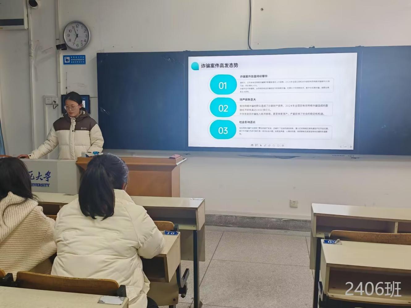 在学院的统一安排下,各班级积极响应,精心策划班会内容。班会形式丰富多样,通过生动的案例讲解与实用的防诈技巧分享,营造了轻松且富有教育意义的学习氛围。根据收集并整理的校园内外的真实诈骗案例,以图文并茂的方式,向同学们展示了网络兼职刷单、冒充客服退款、校园贷、虚假投资理财等常见诈骗手段。这些鲜活的案例让同学们深刻认识到诈骗行为的隐蔽性与危害性,起到了良好的警示作用。