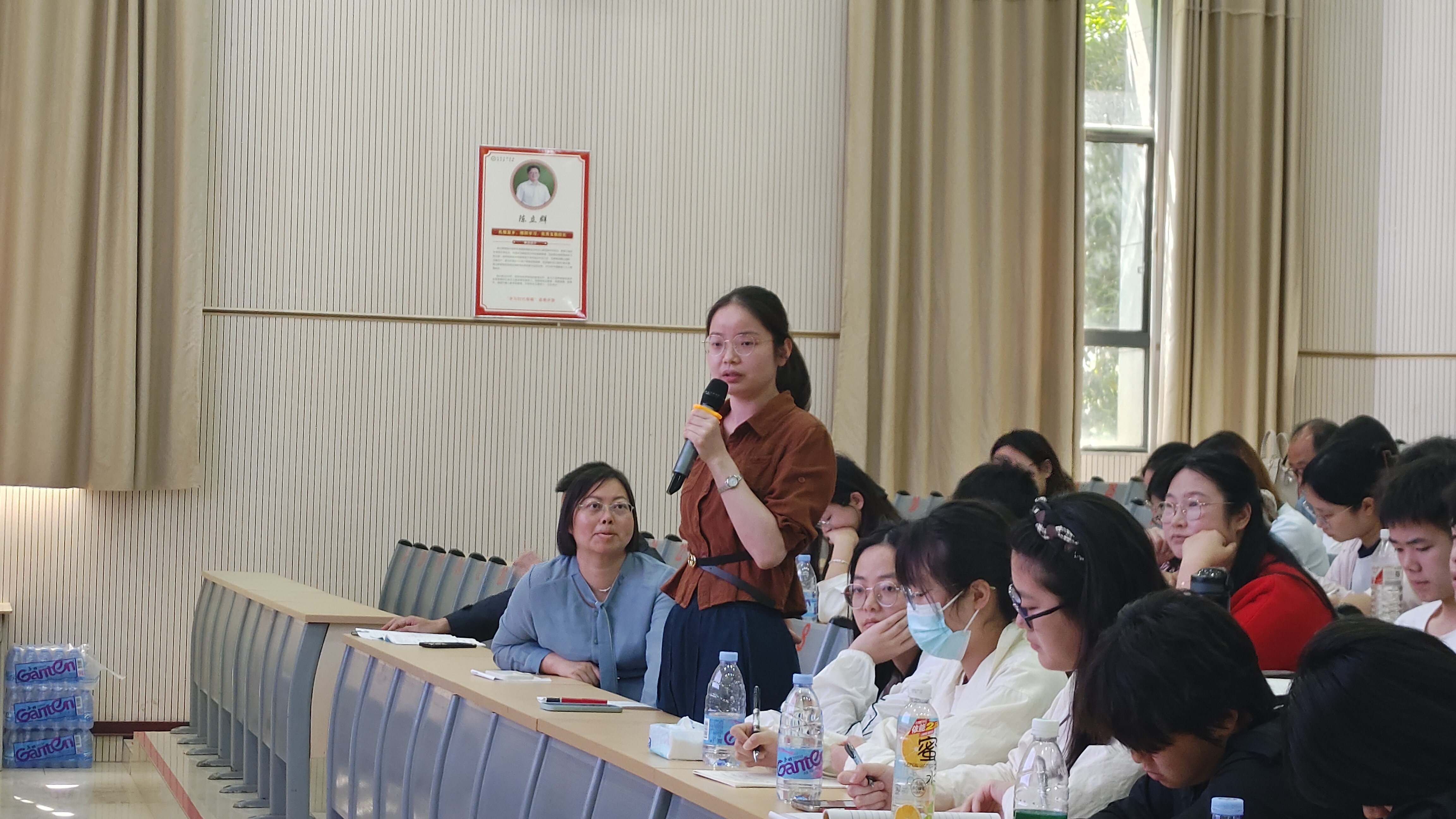 教学展示结束后,思维碰撞的火花继续在现场绽放。2022级化学(优师班)学生积极提问,现场专家老师从课堂教学的各个层面耐心解答。随后,专家老师们各抒己见,对两位老师的课堂进行了细致入微的评课。最后,主讲人杨彩云老师进行总结评价,充分肯定了两堂课的优秀之处。两节课都遵循预测性质、实验验证、归根表征的教学流程,与深度学习模型高度契合,且各具亮点。