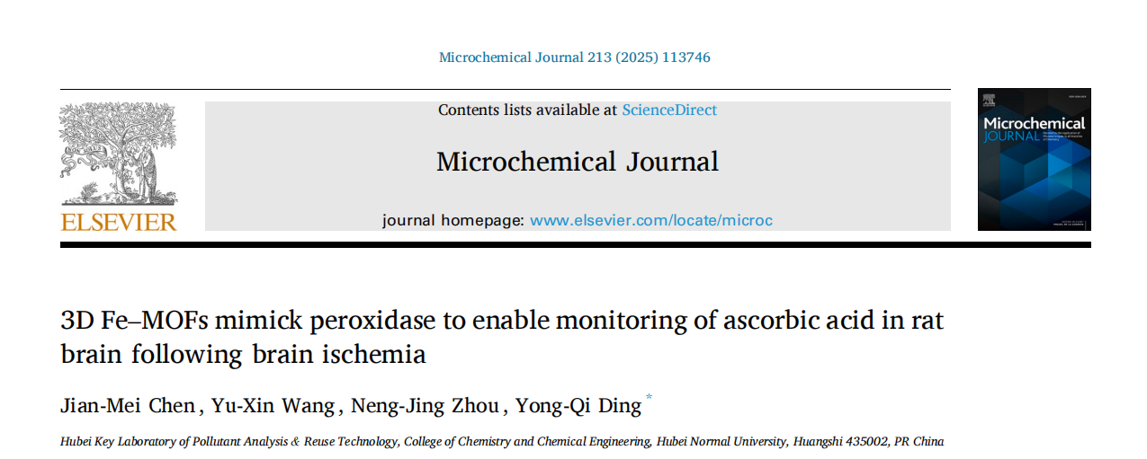 4月,国际知名期刊Microchemical Journal(《微化学杂志》)在线发表该团队在多功能纳米材料活体分析领域的最新研究成果。论文题为“3D Fe–MOFs Mimick Peroxidase to Enable Monitoring of Ascorbic Acid in Rat Brain Following Brain Ischemia”(三维六角钟形Fe-MOFs纳米酶实现缺血性脑损伤大鼠脑内抗坏血酸水平的比色测定)。2024级硕士研究生陈剑梅为论文第一作者,丁永奇博士为通讯作者,威廉williamhill为论文第一单位。Microchemical Journal是Elsevier(爱思维尔)出版社旗下分析化学领域期刊、SCI中科院大类二区期刊,最新影响因子为4.9。