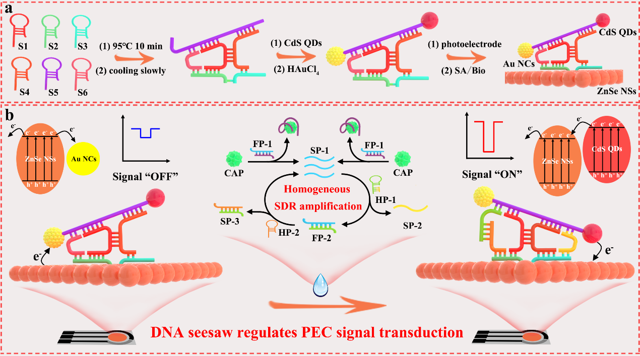 双链锚定DNA跷跷板稳定调控PEC信号转导准确灵敏检测氯霉素残留示意图