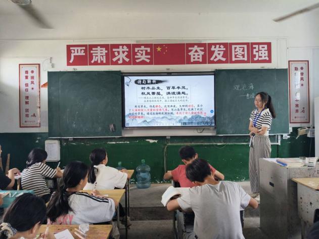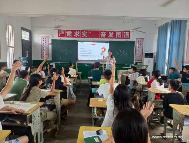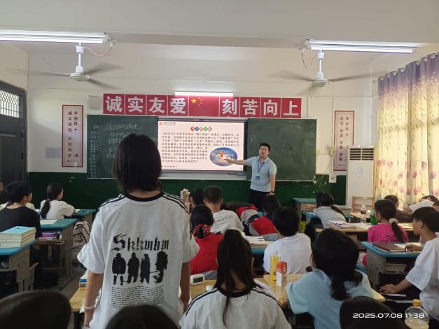 文化课教学中,队员们精准发力,夯实学生知识基础。语文课上,经典文段赏析与生活片段写作结合,让读写能力在实践中提升;数学课上,基础巩固与新课预习同步推进,小组解题竞答点燃学习热情;英语课上,“单词接龙”“情景对话” 等趣味活动,让单词句型在互动中扎根。物理课则聚焦八年级第一章《机械运动》内容开展新课预学,提升学生学习物理的信心和兴趣。
