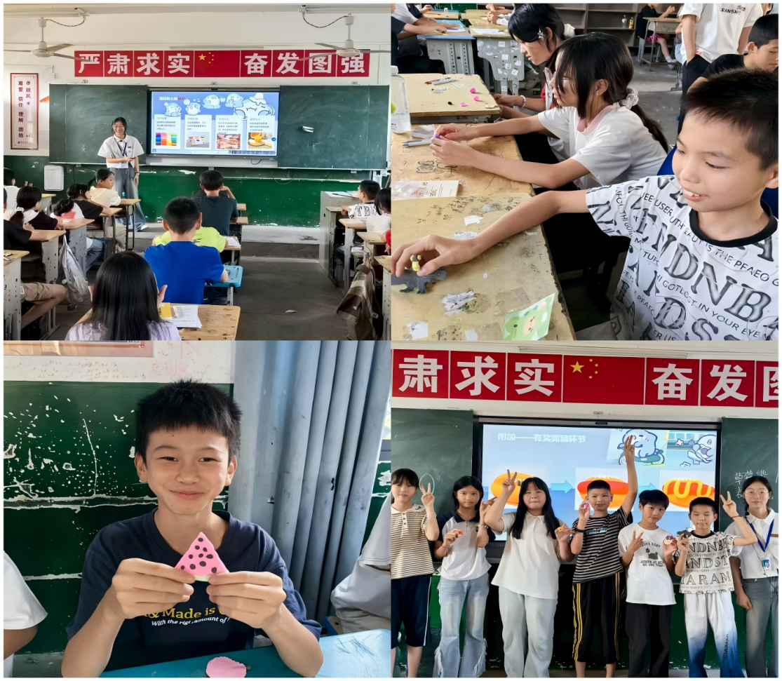 活动课程设置多样化,不断丰富学习体验,提升学生多方面能力。科普课以“太阳能的奥秘”为主题,大学生们用动画演示、实物讲解等方式,生动阐述太阳能发电的原理。随后指导学生分组组装简易太阳能小车,让学生在动手操作中直观感受清洁能源的作用。美术课以“粘土创意世界”为主题,以超轻粘土为主要工具,引导学生发挥想象,创作人物、动物、风景等粘土画。卫生健康课立足于学生正处于青春期的起步阶段为,开展“走进青春期”“认识生殖系统”“月经——我的好朋友”等内容教学,引导学生正确认识青春期的生理心理变化。心理健康课以“友谊的小船”等为主题,通过小组讨论、情景剧表演等形式,引导学生理解友谊的真谛,培养良好的人际交往能力。道德与法治课聚焦“迎接新生活”“走进社会生活”等课题,通过讨论、讲授等方式引导学生正确认识自身所处阶段,明确做好学习规划的重要性。