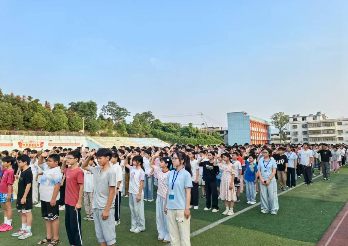 在升旗仪式上,实践队员们将暑期防溺水安全作为重中之重。伴随着朝阳升起,队员龙一涵担任主持人,八年级学生代表袁锶涵进行“珍爱生命,预防溺水”主题演讲,稚嫩却坚定的声音传递出守护生命的责任。随后,作为班主任代表的队员张琪结合学生们的暑期生活特点,细致地提出了学习与安全方面的要求。排市中学校长明锐结合近期案例,讲解野外游泳的危害,向学生们再次强调提高安全意识,远离危险水域。