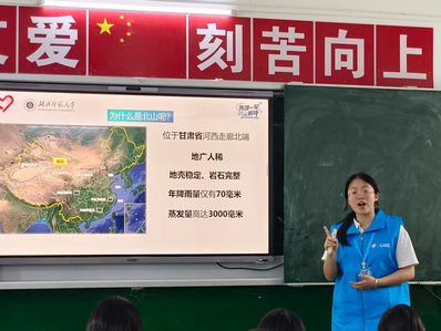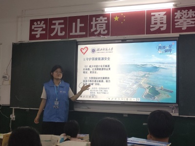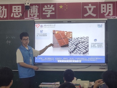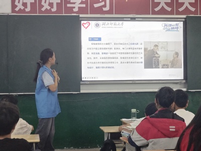 下午,以上6位同学和在排市镇初级中学开展支教工作的覃思湘会合,为排市初中的七至九年级学生开展了宣讲。覃思湘从郭永怀、王淦昌等科学家的感人事迹入手,详细讲述了他们如何冲破重重阻碍回国效力,隐姓埋名扎根戈壁,最终为我国“两弹一星”事业作出卓越贡献的故事。覃思湘特别提到郭永怀在飞机失事时仍用身体保护绝密资料的壮举,以及王淦昌甘愿隐姓埋名17年,只为国家核事业的无私奉献,引导学生思考个人理想与国家需要的关系,激励他们学习科学家们“以身许国”的崇高精神。其他6位宣讲员将上午宣讲内容进行适当修改后面向初中生再次进行了宣讲。