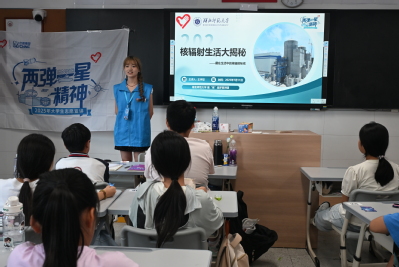 7月11日,宣讲团成员王宇欣、金萧宇、屠董婷走进大冶湖学校,分别为六升七和七升八年级学生进行宣讲。王宇欣从核辐射的自然来源、生活中的辐射实例、辐射剂量与安全标准等方面进行了讲解。她以“日常生活中的核辐射”为切入点,结合“香蕉辐射”案例,让学生理解核辐射是普遍现象。同时结合“西弗”的通俗解释,用动画演示辐射剂量与安全标准的关系。屠董婷通过生动讲述王淦昌同志的功勋事迹,阐释了“热爱祖国、无私奉献,自力更生、艰苦奋斗,大力协同、勇于登攀”的“两弹一星”精神内核,进而讲解阐释“四个一切”核工业精神、新时代核工业精神及重大工程精神。金萧宇则以“三个30年”为脉络,展现中国核工业从原子弹、氢弹突破到“华龙一号”三代核电、高温气冷堆等大国重器的奋进历程。