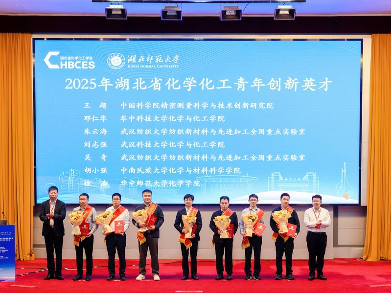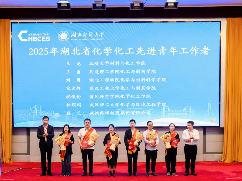 学会副理事长袁明研究员、校党委书记李宏教授为2025年“湖北省化学化工青年创新英才”颁发荣誉证书