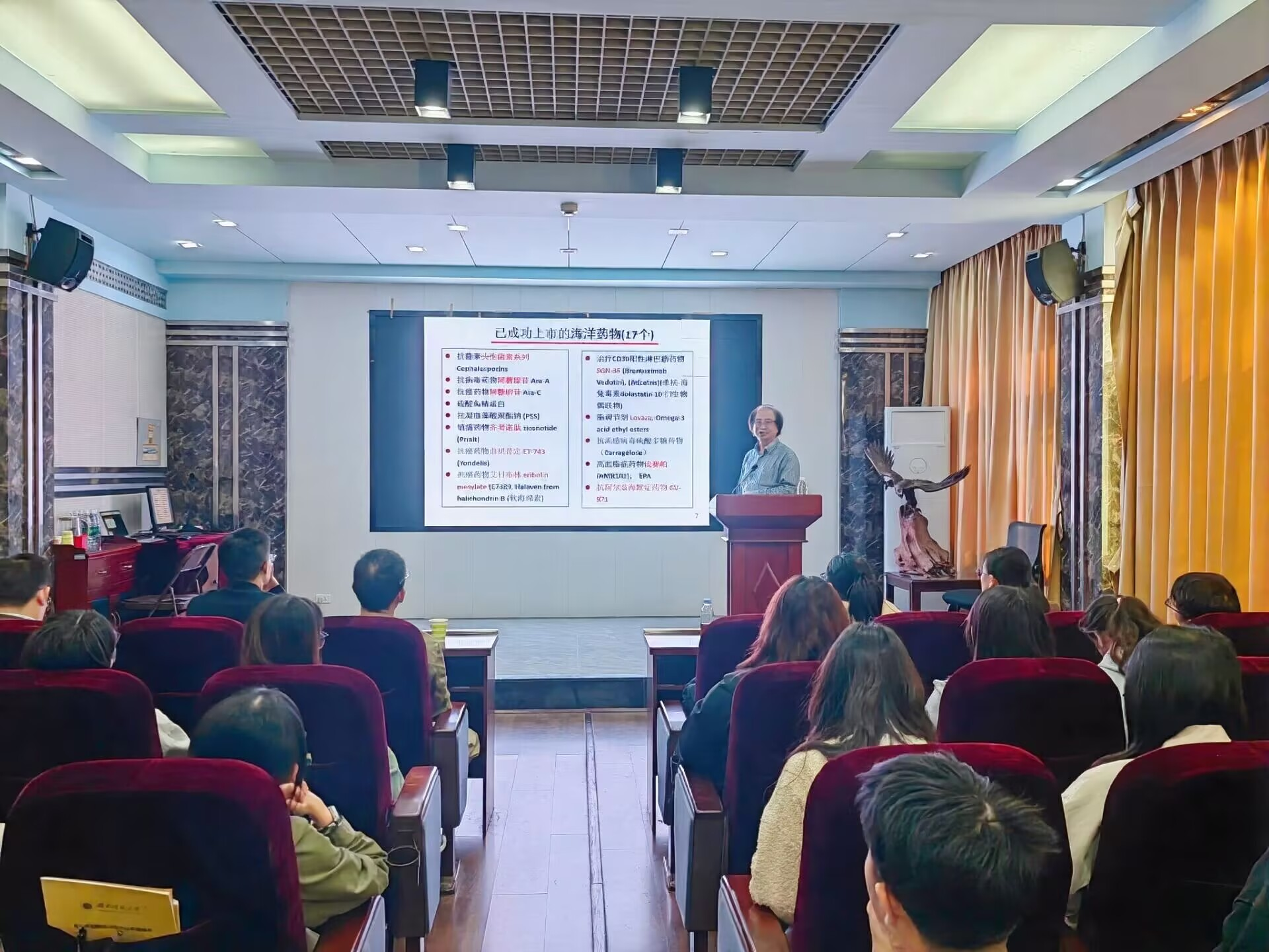 海洋天然产物凭借结构多样性与良好的成药性,是临床应用药物的重要化学来源。截至目前,已有17种海洋药物成功实现上市,充分印证了海洋天然产物在医药领域的实用价值与发展潜力。王斌贵教授详细分享了海洋天然产物从获取到分析的核心步骤,涵盖深海采集、实验室微生物培养分离、天然产物结构鉴定及其生物合成,以及在此过程中利用的多种关键技术方法,包括晶体衍射技术、TLC显色反应、结构理论计算等。报告最后,王斌贵教授还展示了在深海环境中应用先进技术直接进行生物培养的方法,该方法为突破传统采集与培养局限、探究更多未知海洋天然产物开辟了新路径。