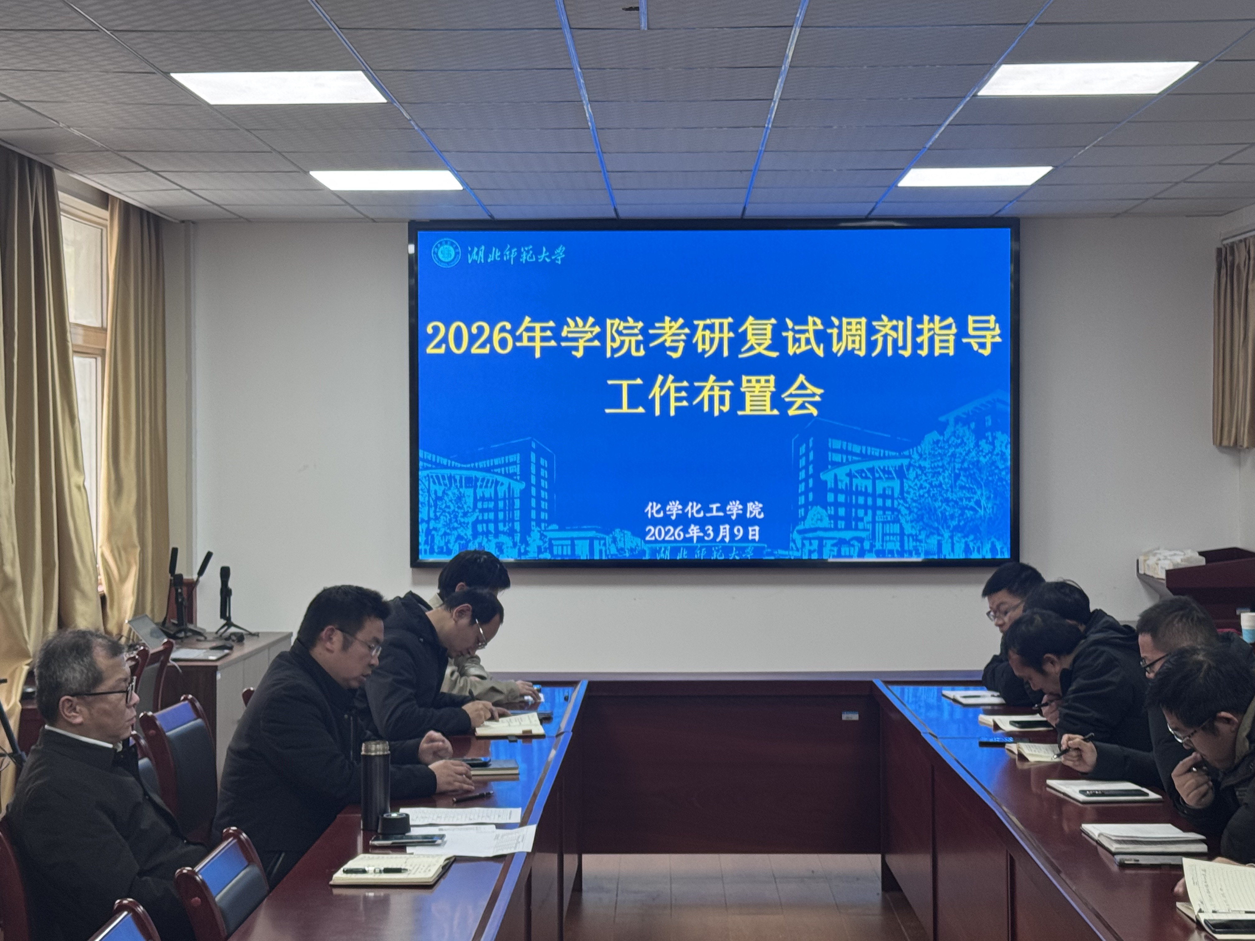 3月9日,学院召开2026届本科生考研复试调剂指导工作布置会,全面部署下一阶段上线考生指导服务工作。院党委书记罗鸿飞、院长殷国栋出席会议,学工办、毕业班班主任、考研复试调剂指导小组教师参加会议。会议由院党委副书记汪崇文主持。