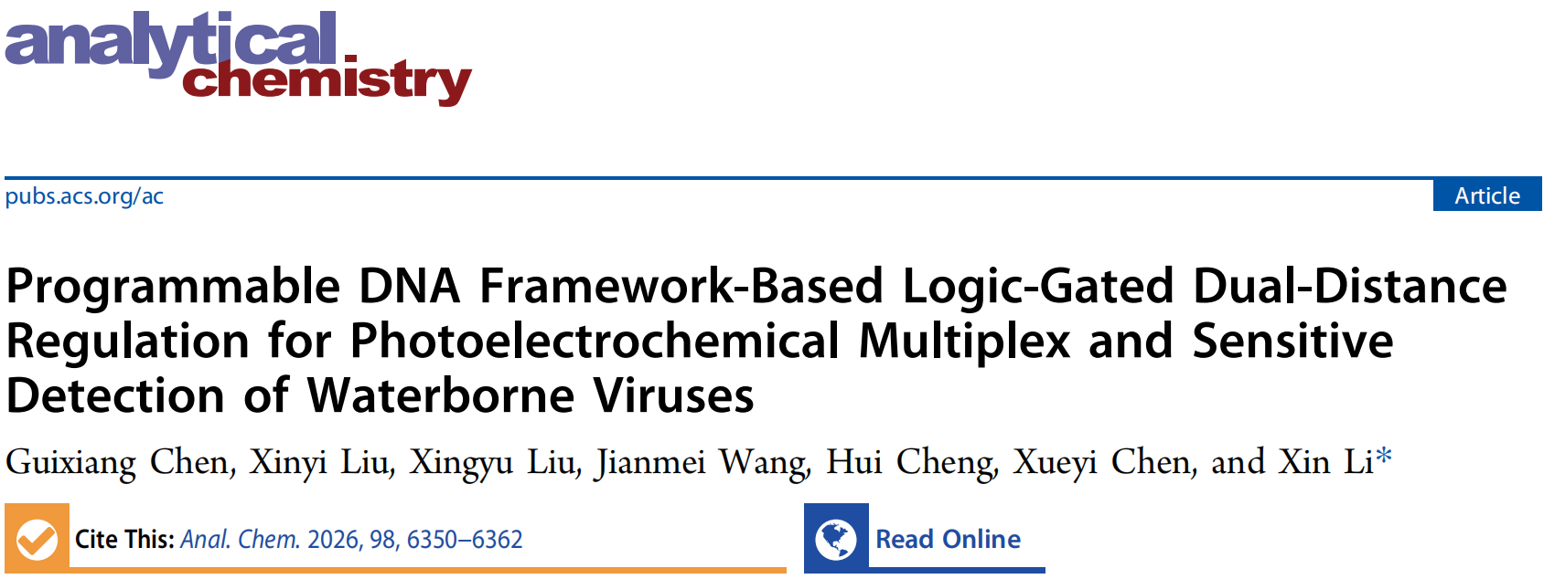 2月,Analytical Chemistry(《分析化学》)在线发表该团队题为“Programmable DNA Framework-Based Logic-Gated Dual-Distance Regulation for Photoelectrochemical Multiplex and Sensitive Detection of Waterborne Viruses”(可编程DNA框架逻辑门赋能双重距离调控PEC多元灵敏检测水环境病毒)的研究论文。我院2023级硕士研究生陈桂香为论文第一作者,李新副教授为通讯作者,威廉williamhill为论文唯一通讯单位。Analytical Chemistry是American Chemical Society(美国化学会)出版社旗下收录分析化学领域相关研究成果的顶级期刊,中科院SCI化学大类一区期刊、自然指数期刊,最新影响因子为6.7。