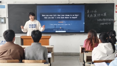 比赛开始,主持人夏丽雯介绍了比赛内容和评分细则,随后选手们依次上台进行3分钟演讲以及即兴问答。赛中,选手们表现出扎实的英语功底与良好的知识储备,其慷慨激昂的演讲,充分展现了我院学子的青春活力与激情昂扬的精神风貌。选手演讲完毕后,何无妨对选手们的表现给予肯定,从演讲内容以及技巧方面对选手们在赛中表现出的不足提出了建议。
