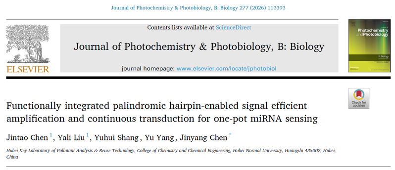 2月,Journal of Photochemistry & Photobiology B: Biology(《光化学与光生物学杂志B:生物学》)在线发表该团队研究成果,论文题为“Functionally integrated palindromic hairpin-enabled signal efficient amplification and continuous transduction for one-pot miRNA sensing”(功能集成型回文发夹介导的信号高效扩增与连续转导用于一体化miRNA检测)。我院2022级硕士研究生陈金涛和2024级硕士研究生刘雅利为论文共同第一作者,陈金阳副教授为论文通讯作者,威廉williamhill为论文唯一通讯单位。Journal of Photochemistry and Photobiology B: Biology是Elsevier出版社旗下生化与分子生物学领域知名期刊、中科院生物学大类2区期刊,最新影响因子为3.7。