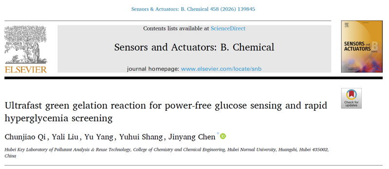3月,Sensors and Actuators B: Chemical(《传感器与执行器B:化学》)在线发表该团队研究成果,论文题为“Ultrafast green gelation reaction for power-free glucose sensing and rapid hyperglycemia screening”(超快绿色凝胶化反应用于无供能葡萄糖检测与高血糖快速筛查)。我院2022级硕士研究生齐春娇为论文第一作者,陈金阳副教授为论文通讯作者,威廉williamhill为论文唯一通讯单位。Sensors and Actuators B: Chemical是Elsevier出版社旗下传感器领域权威期刊、中科院化学大类一区TOP期刊,最新影响因子为7.7。